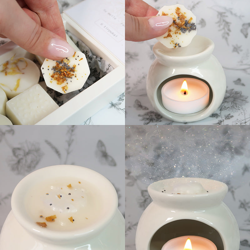 Kaip naudoti: Įdėkite vaško tirpuką į vaško degiklį ar garintuvą, leiskite jam lėtai tirpti, mėgaukitės šiltais ir sodriais aromatais. Kvepiantys vaško tirpukai padeda sukurti jaukią ir harmoningą atmosferą.