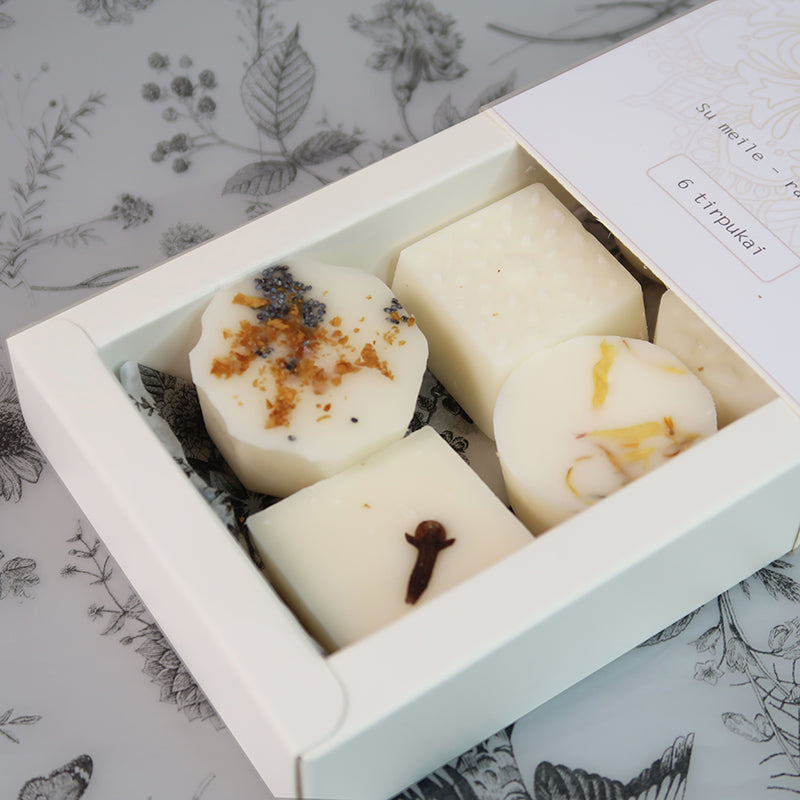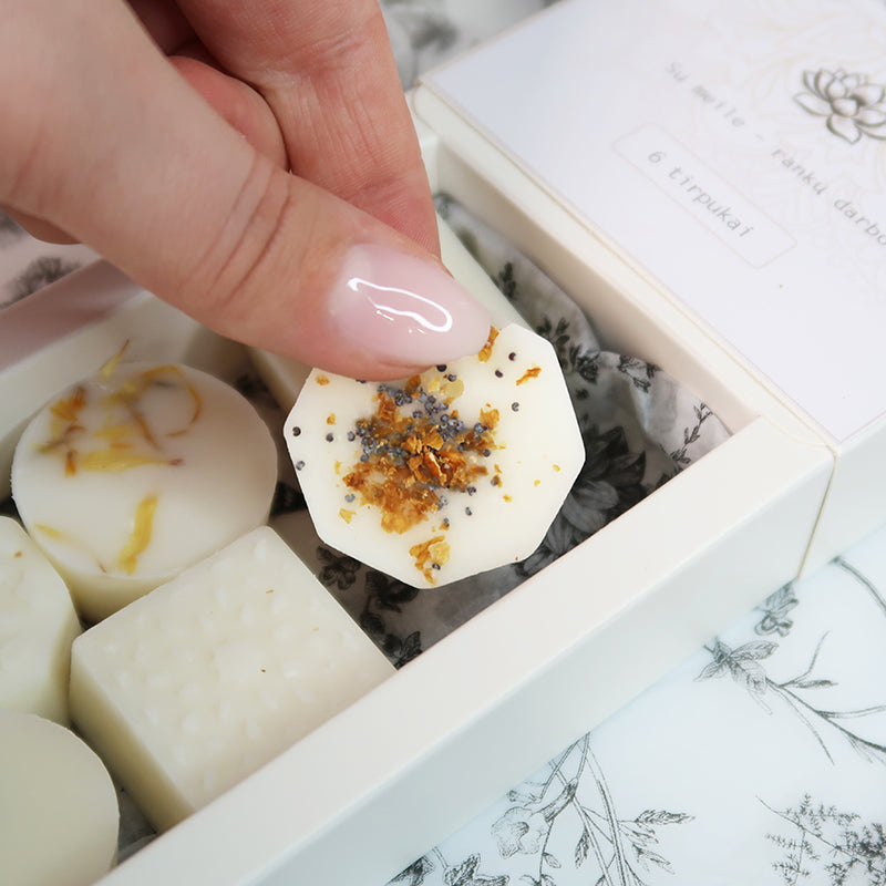 Šeši sodrūs, kvepiantys rankų darbo vaško tirpukai: